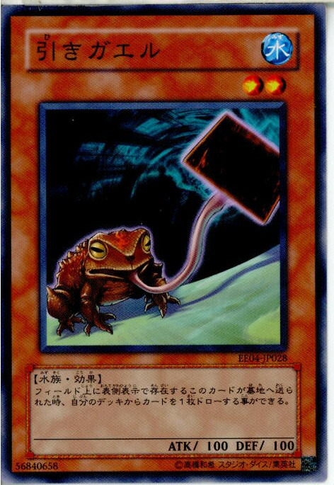 効果モンスター 星 2 / 水 / 水族 / 攻100 / 守100 フィールド上に表側表示で存在するこのカードが墓地へ送られた時、自分のデッキからカードを1枚ドローする事ができる。 ※この商…. 遊戯王カード 引きガエル EE4-JP028-N 《エキスパートエディションVol.4》ほかトレカ・トレーディングカード関連商品が勢ぞろい。アマゾンなら最短当日配送。. Crv-jp028 引きガエル(日本語版 ノーマル) の遊戯王カード通販・販売ページ。引きガエルの 遊戯王通販価格、ショップ買取相場、カード画像を掲載。.