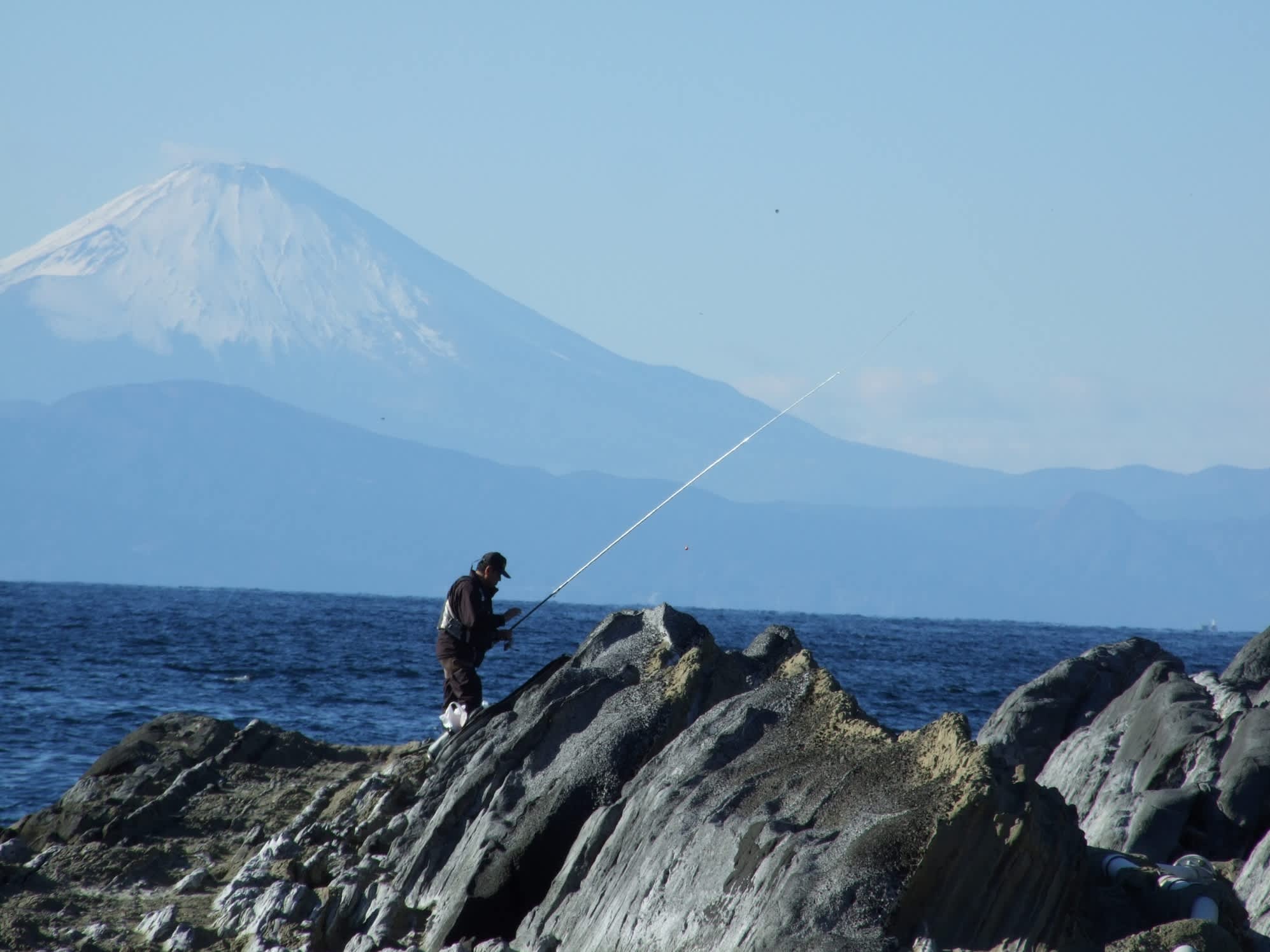 城ヶ島の釣り人と富士 Discover The 風雅のブリキ缶 Written By Tonkyu