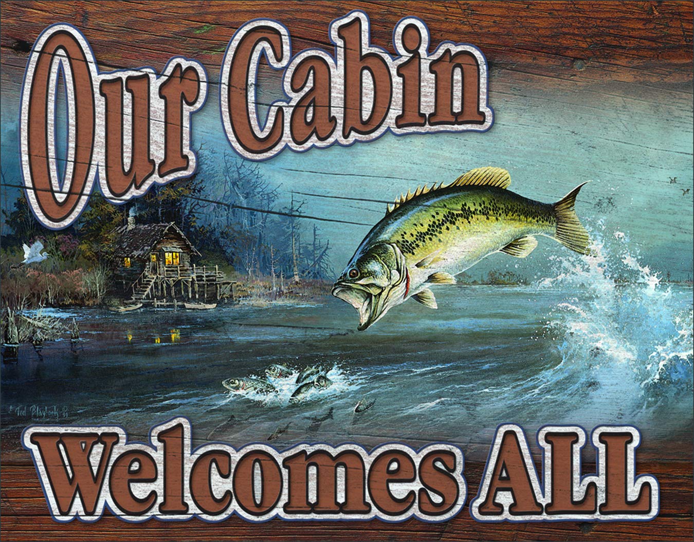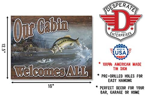 Amazon Co Jp ブラックバス バスハンティング Our Cabin Welcomes All 釣り系 アメリカンブリキ看板 1667 ホーム キッチン
