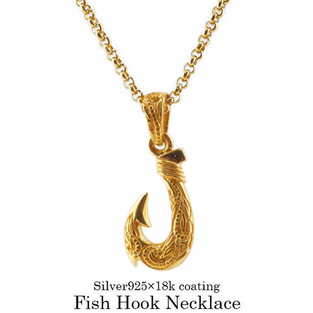フィッシュフックネックレス 釣り針 ネックレス ギフト ゴールド メンズ レディース ハワイアン Silver925 シルバー925 18k Coating ハワイ 金属アレルギー 対応 チェーン付 小豆チェーン 45cm Abalent
