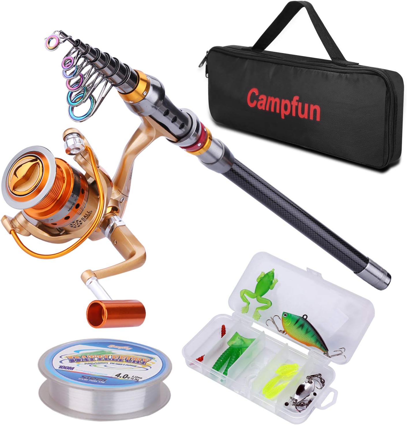 Amazon 釣りセット 釣竿セット 初心者 釣り竿セット伸縮 炭素繊維釣り竿 カーボン製 ロッド スピニングリール 海釣り 淡水りコンパクトロッド 釣りリール ルアー ライン付き 2 7m Campfun ロッド リールセット