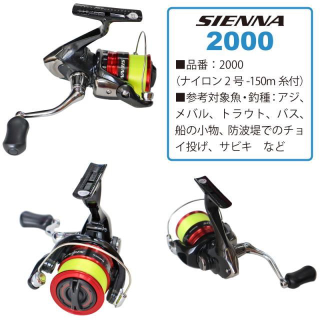 シマノ(SHIMANO) 19 シエナ C3000 3号糸付き. シマノ 19 シエナ C3000(ナイロン3号-150m糸付) スピニングリールならYahoo!ショッピング!3,154円~ご購入可能です。最安値情報や製品レビューと口コミ、評判をご確認頂けます。. シマノ(shimano) 19 シエナ 1000 2号糸付き 040 スピニングリール。シマノ(shimano) 19 シエナ 1000 2号糸付き 040.