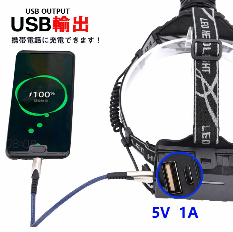 楽天市場 Ledヘッドライト 最強ルーメン 最高輝度 最新仕様 充電式 残量表示 伸縮ズーム 5段階の点灯モード Usb輸出 登山 夜釣り アウトドア作業 Sos 三友ショップ