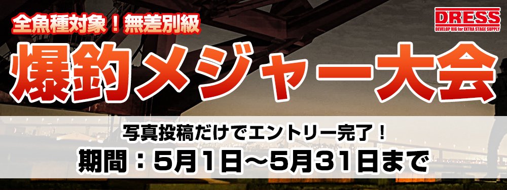 Dress ドレス 釣り V Twitter 爆釣メジャー大会開催中 参加は簡単2ステップ 爆釣メジャーで撮影 またはdress商品を使用中の写真を用意 爆釣メジャーアプリで釣行写真を投稿 全魚種 シチュエーションを対象 賞品など詳細ページはこちら T Co