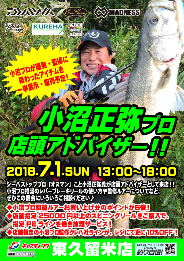 東久留米店 小沼正弥プロ 店頭アドバイザー イベント予定 釣具のキャスティング