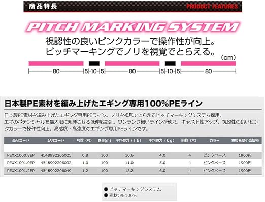 商品ラインナップ フィッシンググッズ Pe Hsエギングx4 5色カラーマーキング