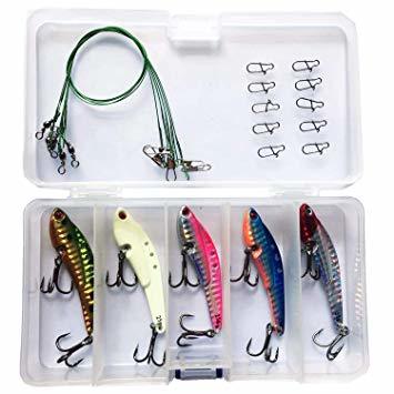 最安値 ルアーセット メタルバイブレーション Vib 飛距離抜群でかっとびます 5本ワイヤーリーダーと10本クイックスナップ付き 海釣り の価格比較