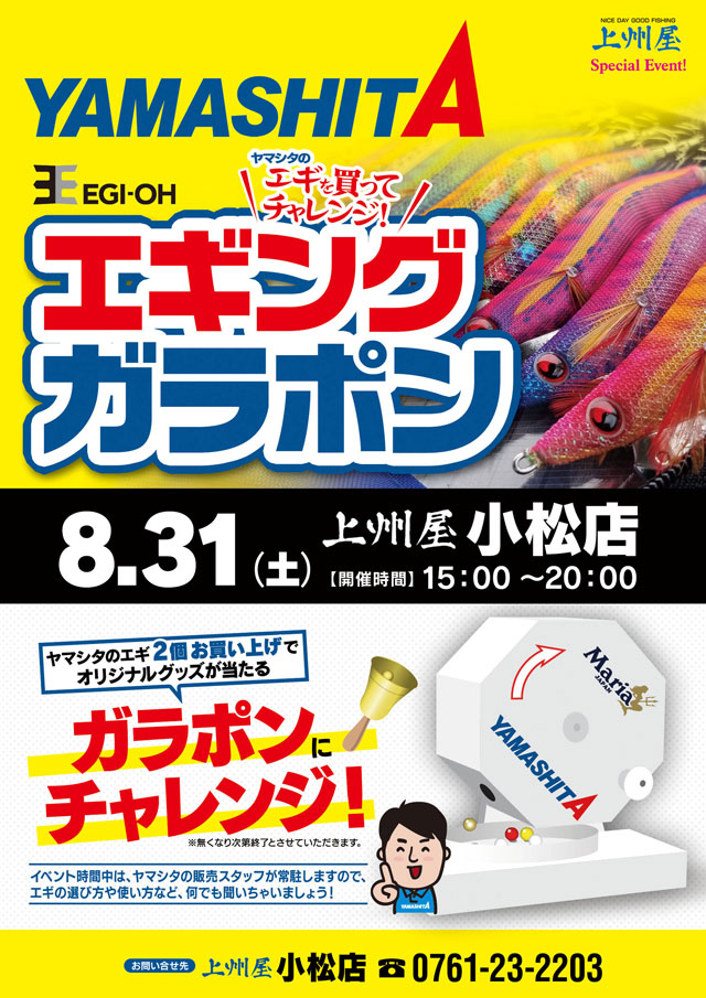 小松店 ヤマシタ Egi Oh エギング ガラポン開催 イベント情報 つり具の上州屋 あなたのフィッシング アウトドアライフをサポート
