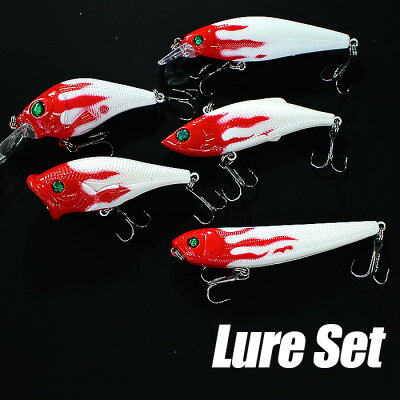 楽天市場 ルアー 詰め合わせ ルアーセット レッドヘッドファイヤーパターン 5個入り ペンシル レンジバイブ シンキングミノー ポッパー クランクベイト フルレンジ シーバス スズキ ソルトルアー チニング 釣り具 釣具 湾奥 根魚 青物 爆釣 カラー デイ ナイト コスパ