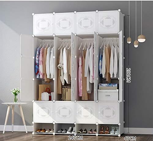 ポータブル ワードローブ 服を保管するための ベッドルームアルモアークローゼットハンギングロッドキューブモジュラーキャビネットガーメントシューズラックストレージシェルフ R 147x47x1cm Ospacp Org Ar