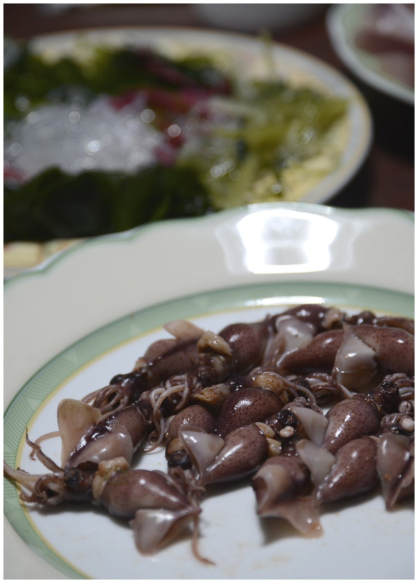 バロン ばろん Baron ホタルイカとイサキと海藻を食しました 美味しかったわw 先ほどのレンズで試写 少しアンダー これは設定の問題w 海藻は普通にわさび醤油で食べてるのですが 他に食べ方あるのかしら