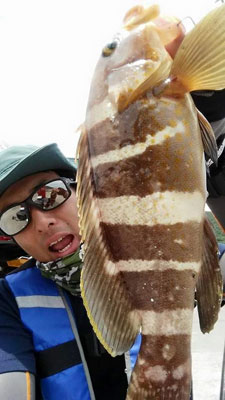 波止でのタイラバ ショアラバ でオオモンハタ ヤズ手中 深海漁港