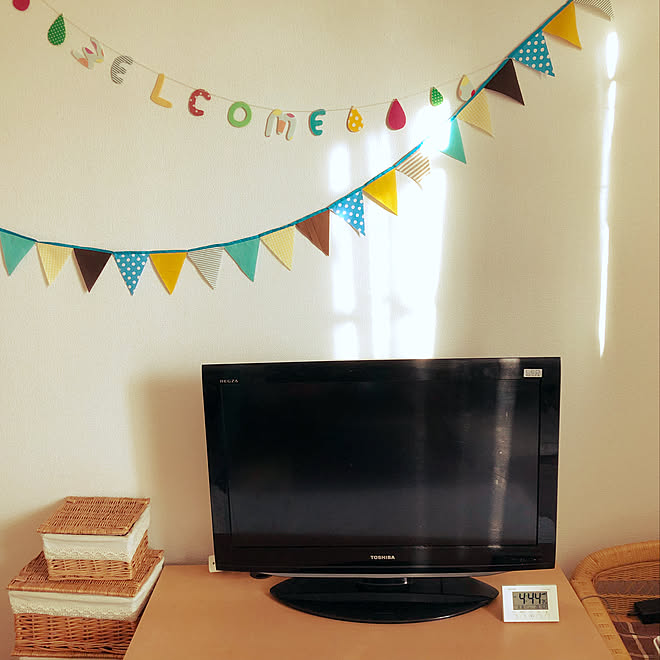 かご収納 フラッグガーランド リビングの壁 部屋全体 テレビ周りのインテリア実例 18 09 22 15 50 50 Roomclip ルームクリップ