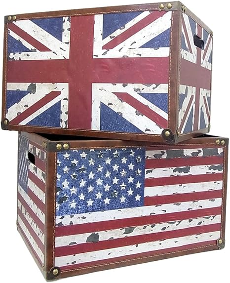Amazon オシャレ 2wayケース アンティーク風 アンドリュース トランクケース インテリア イギリス ロンドン アメリカ 米国 ユニオンフラッグ ユニオンジャック 星条旗 大容量 収納box クラシック 大小2台セット イギリス Mi Anancase Ig 収納ケース ボックス