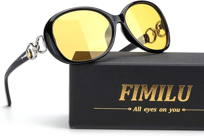 Amazon Fimilu 女性夜間 ドライブ 用 メガネ クラシック特大フレーム偏光 イエロー夜間運転用メガネ 旅行 釣り 登山 アイウ ブラックフレームメガネ 夜用 レディース サングラス 通販