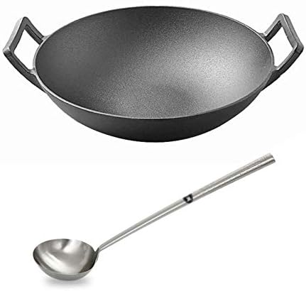 バイノーラルアイアンウォックコーティングされていない健康ラウンドヘルパーハンドル付きボトムスプーン全炉