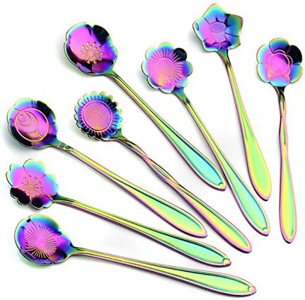 Amazon Co Jp Chengu 8ピース ステンレススチール テーブルウェア クリエイティブ 花 コーヒースプーン シュガースプーン ティー スプーン スターバースプーン かき混ぜスプーン 8種類のパターン ホーム キッチン