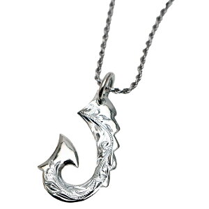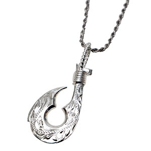 フィッシュフック 釣り針 モチーフ マーメイド 人魚 アレンジデザイン スクロール ハワイアンジュエリー メンズ 彫り装飾 ネックレス 波 シルバー925 ペンダント 新作からsaleアイテム等お得な商品満載