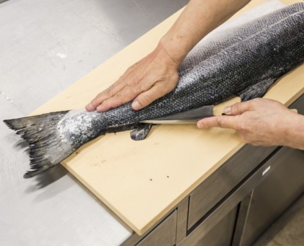サーモン一匹約5キロで大体8000円くらい 東京すしアカデミー 寿司職人養成学校