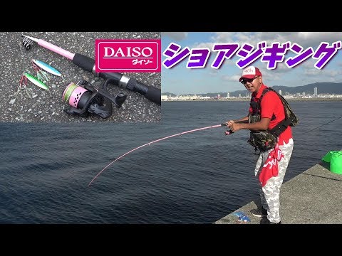 ダイソー竿とリール おまけにジグも使ってショアジギング Daiso釣具 Youtube