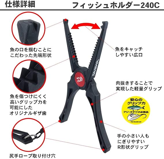 フィッシュホルダー 240c ブラック 全長約240mm ダイワ Daiwa グローブライド 魚つかみ 釣り具 釣り用品 釣り具 プライヤー ハサミ ピンオンリール プライヤー ハサミ ピンオンリール ライフジャケット通販専門店アクアビーチ本店