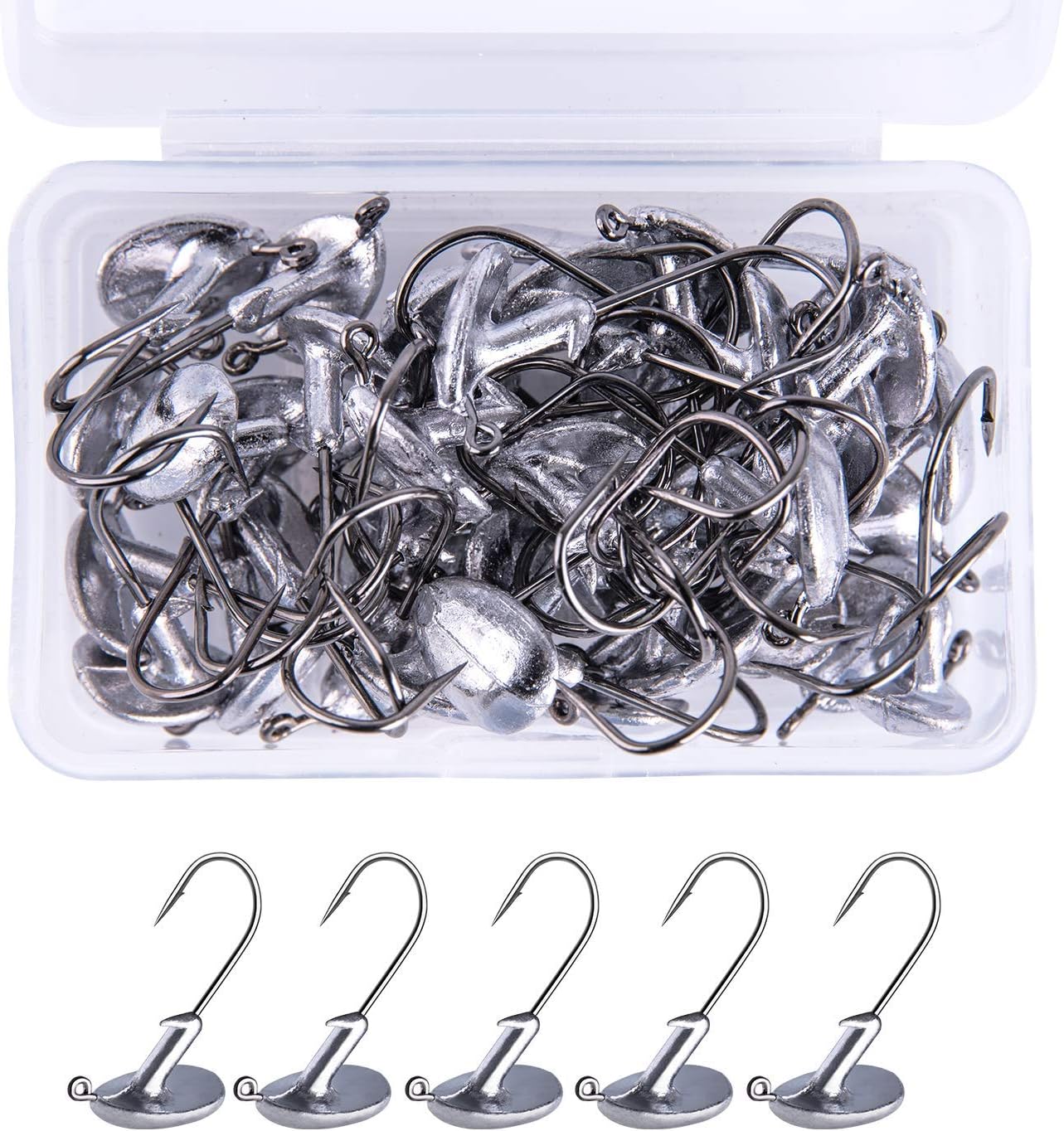 Amazon ジグヘッド フック 5サイズ 50本セット 1g 1 5g 2g 3 5g 5g Box付き バス釣り ワーム アジング Far Out オモリ シンカー