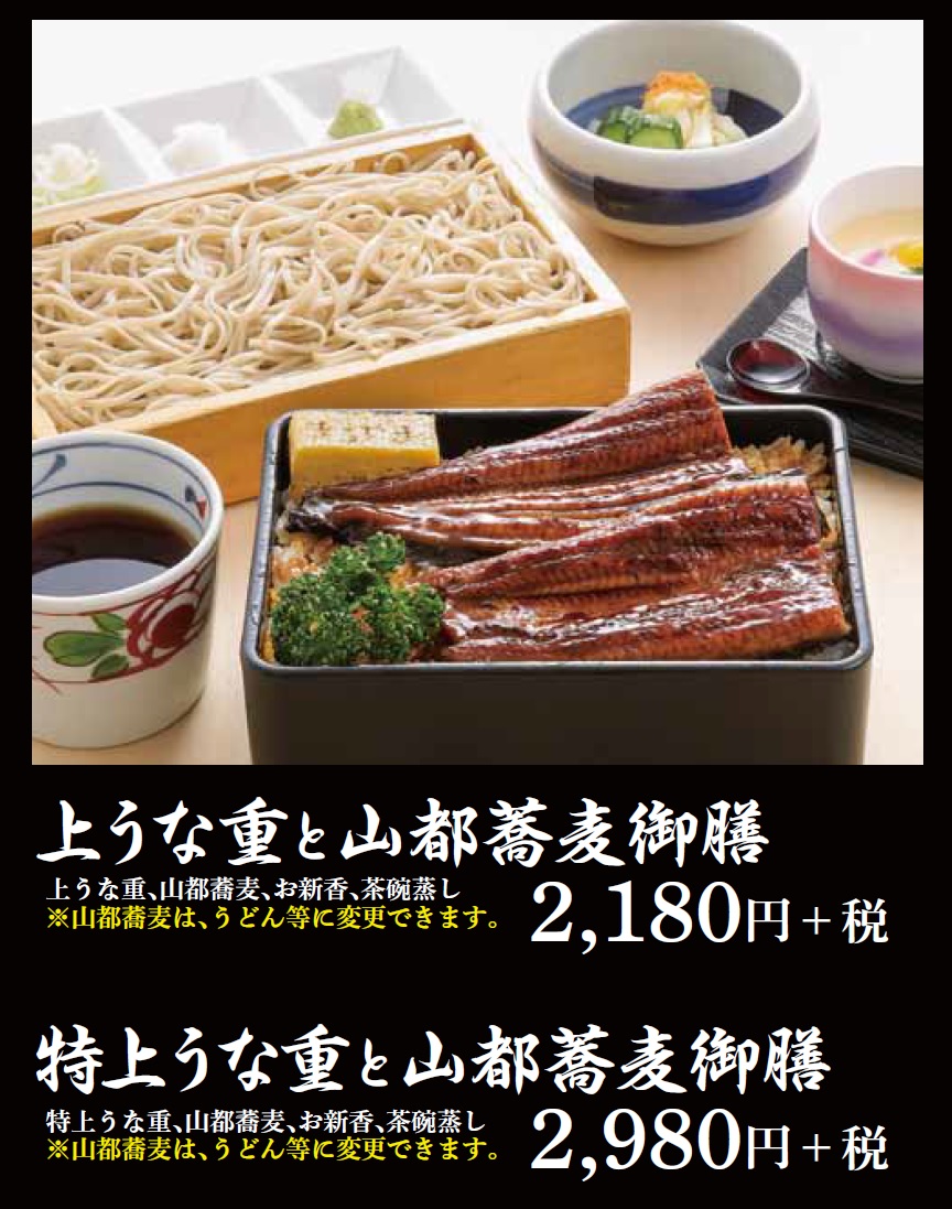 お品書き うな重 うな丼 会席料理も うなぎ専門店 本多