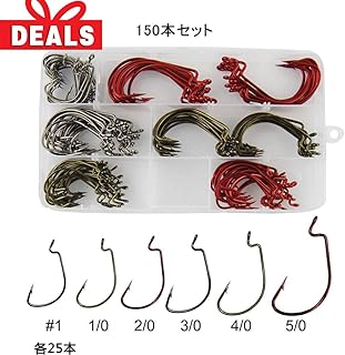 Amazon Shaddock オフセットフック ワームフック 管付 バス釣り針 バーブ付きフック 150本セット 5サイズ 150本セット Shaddock フック 針