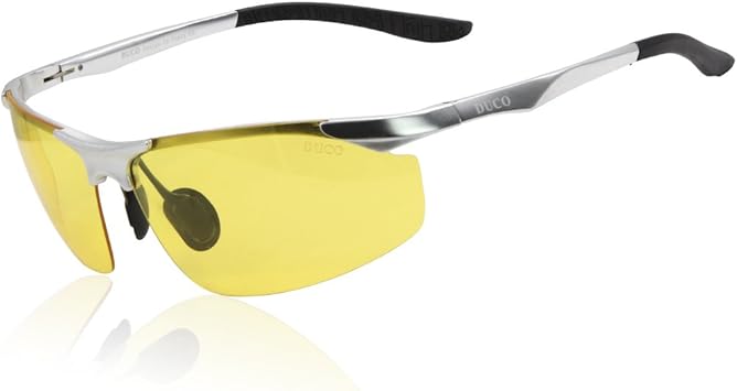 Amazon ナイトビジョンメガネアンチグレア運転釣り偏光グラス8179 シルバー Duco スポーツサングラス