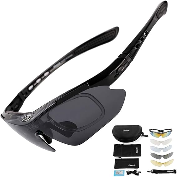 Amazon Co Jp Sireck スポーツサングラス レンズ5枚 偏光サングラス アウトドア ゴルフ ハイキング 釣り サイクリング サングラス バイク 自転車 メガネ アイウェア 男女兼用 ブラック 服 ファッション小物