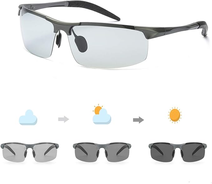 Amazon 変色調光サングラス 偏光サングラス 超軽量 アルミニウム マグネシウム合金材 男女兼用 スポーツサングラス 紫外線感知 Uv400 釣り ドライブアウトドア 登山 自転車 ゴルフ 運転 変色 調光グラス Yaygod スポーツ アウトドア