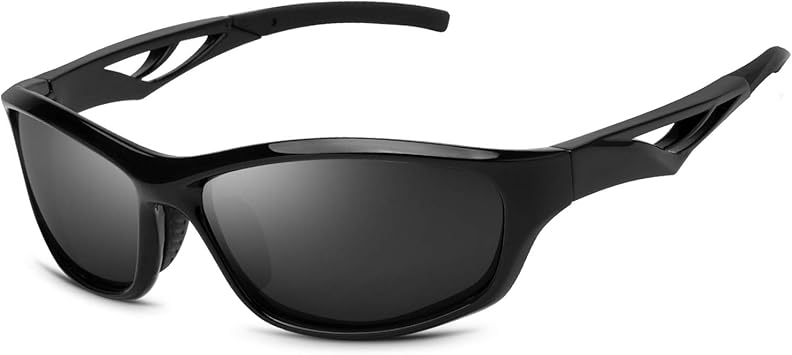 Amazon Vegoosメンズサングラス偏光uv400保護スポーツスタイルサングラス釣り用サイクリングメガネ ブラックフレーム グレーレンズ サングラス 通販