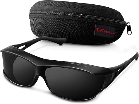 Amazon Tinhao オーバーサングラス レンズ曲がる 偏光サングラス メガネの上からかけられる Uv400 サイクリング ドライブ 釣り ランニング 野球 ブラック ブラック Tinhao スポーツサングラス