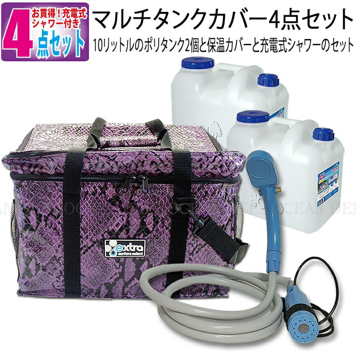 楽天市場 ダブルマルチタンクカバー 充電式シャワーセット スネークパープル 防水 Extra エクストラ 10リットルポリタンク 保温カバー 充電式コードレスポータブルシャワーのセット オーシャンデプト